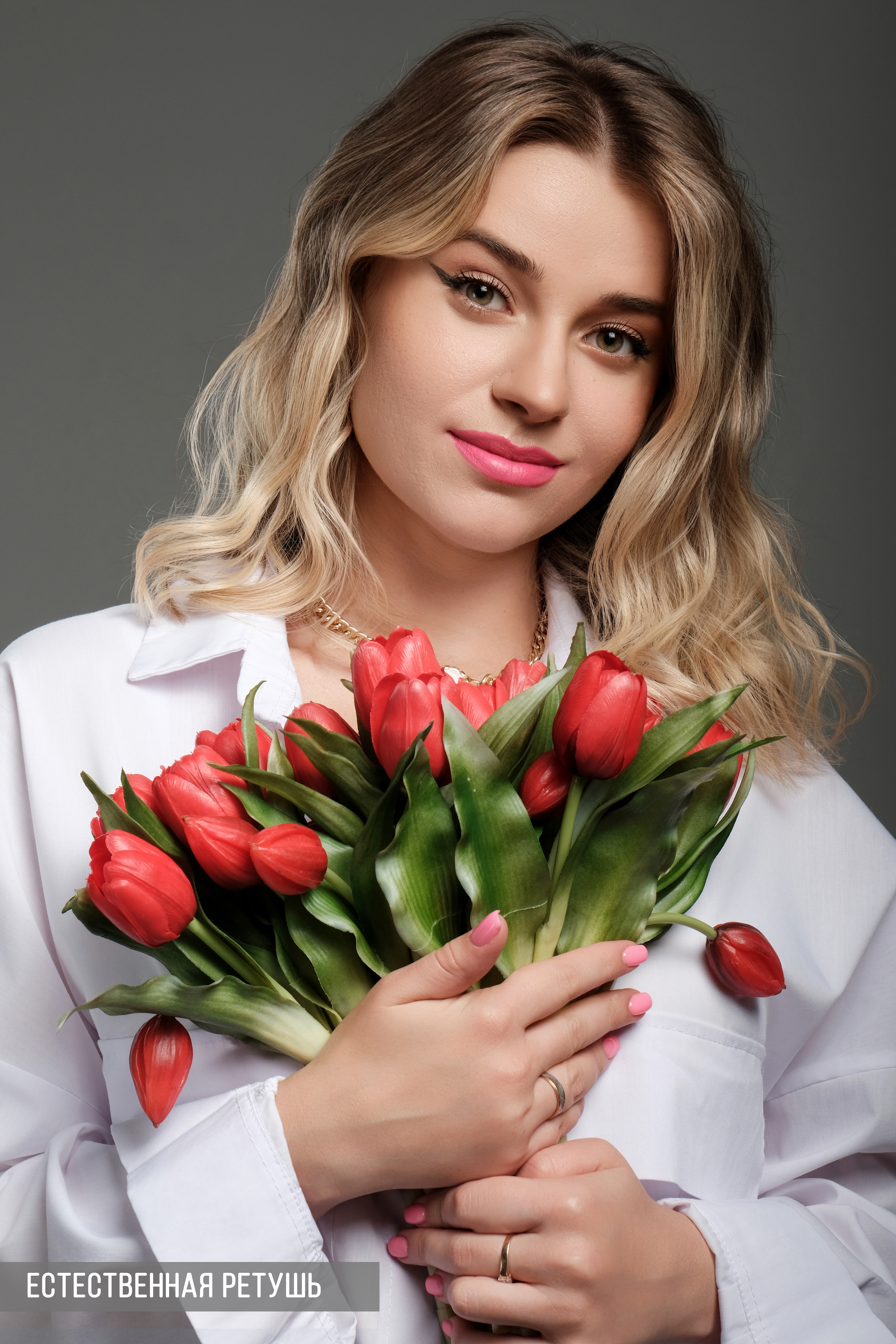 Обработка крупного портрета высокого качества до идеального состояния кожи, губ, ресниц, макияжа, прически...